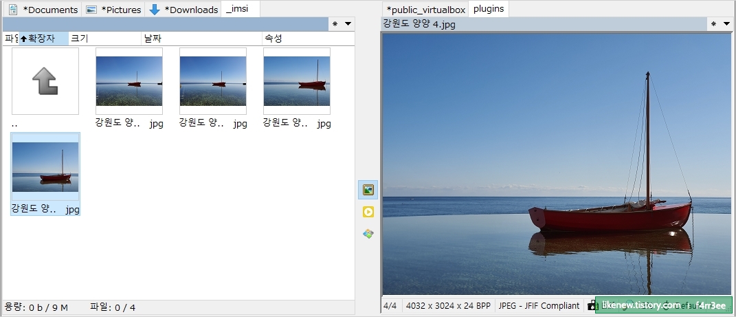사진(그림) 파일 선택 후 단축키 "ctrl + q"를 입력하면 반대편 창에 사진(그림)을 볼 수 있다.
